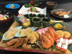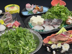 신춘의 가이세키 요리와 함께 즐겁게 드세요.
