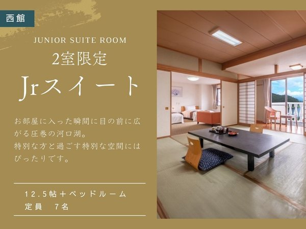 【西館】ジュニアスイート和洋室ベッドルームから眺める河口湖