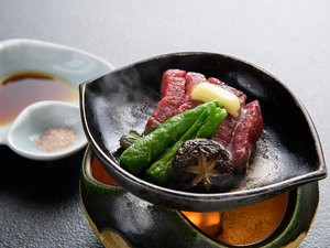 当館人気のオリジナル懐石料理13品に含まれる国産黒毛和牛鉄板焼き(70~80g...