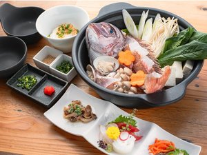 新鮮な真鯛を丸々一匹使用した贅沢な寄せ鍋を、暖かいお部屋でお召し上がりください。