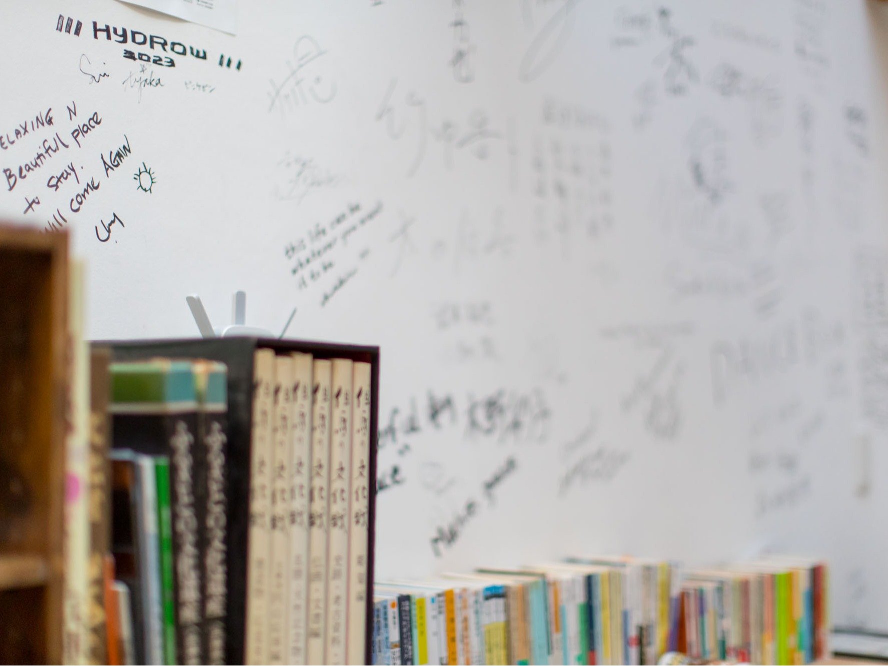 当店は「人が集まる場所を作りたい」との思いで、1階を書店とカフェバー、2階をゲストハウスとして日本全国にとどまらず、世界各国の方々にご利用いただいております。