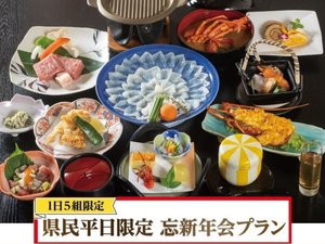 HP exclusive "Weekday only for prefecture residents! New Year's and New Year's plan" Fugu and Miyazaki Beef Kaiseki◆Matsu Course◆19,000 yen[Private open-air bath: 45 minutes free]