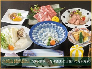 盡情享用僅在我們網站上供應的“雅”河豚和宮崎牛特餐。≪提供商店門票和 HP 折扣以及平日兒童折扣≫