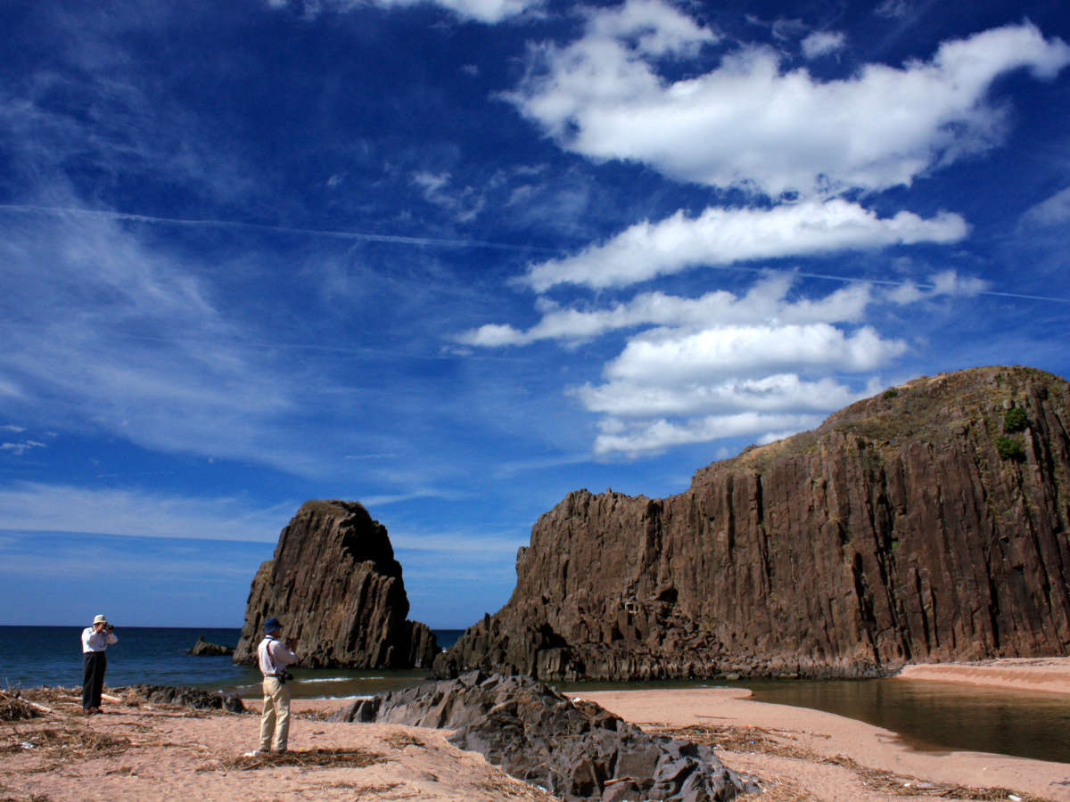当館うしろの海水浴場にそびえ立つ京都百景「立岩」
