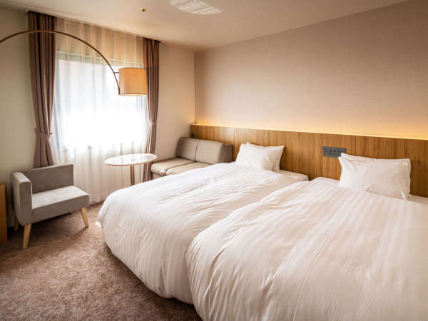観光だけでなく、滞在も充実させたいおふたりへシンプルながらも上質なものを集めたこだわりのお部屋。セミダブルサイズのベッドで、快適な眠りをお届けします。【客室詳細】セミダブル(140cm幅)×2台、24平米ユニットバス、洗浄機付トイレ、無料Wi-Fi完備、禁煙【アメニティ】シャンプー・コンディショナー・ボディソープ・ハンドソープドライヤー・かみそり・歯ブラシ・ミネラルウォーター・お茶セット