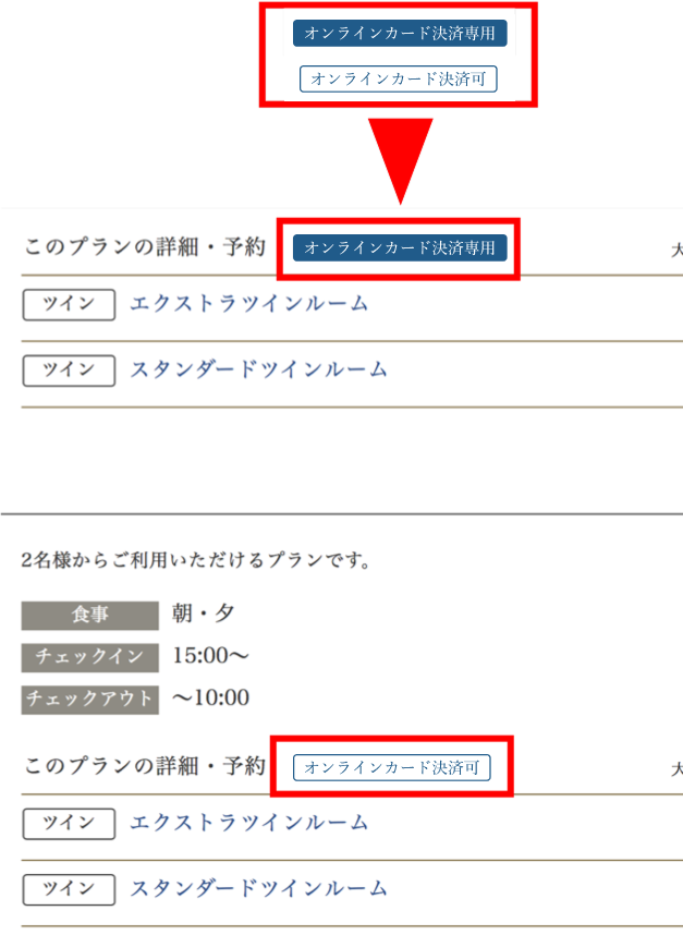 本サービスに参画する当施設が設定したプランに限り、オンラインカード決済のご利用が可能です。