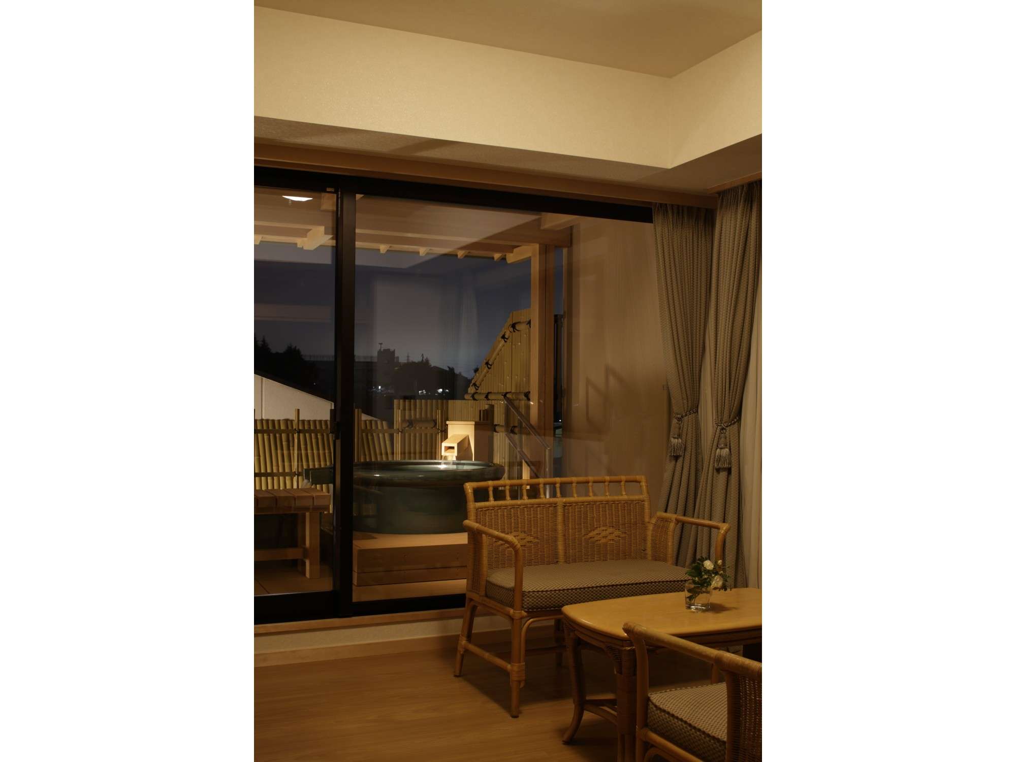 6階の角部屋で富士山の眺めも良く、富士山眺望の展望風呂(内湯/沸かし湯)と露天風呂(温泉)が付いたお部屋です。また、小さな足湯もついております。