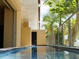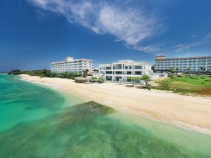 -沖縄を象徴する、コバルトブルーの海に、白い砂浜に面したリゾートホテル-