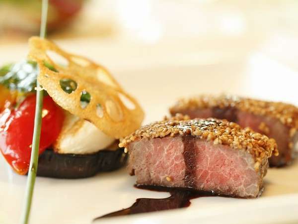 メインディッシュの肉料理はシェフのフレンチを堪能♪季節の野菜とともに仕上げる一皿の中の和洋