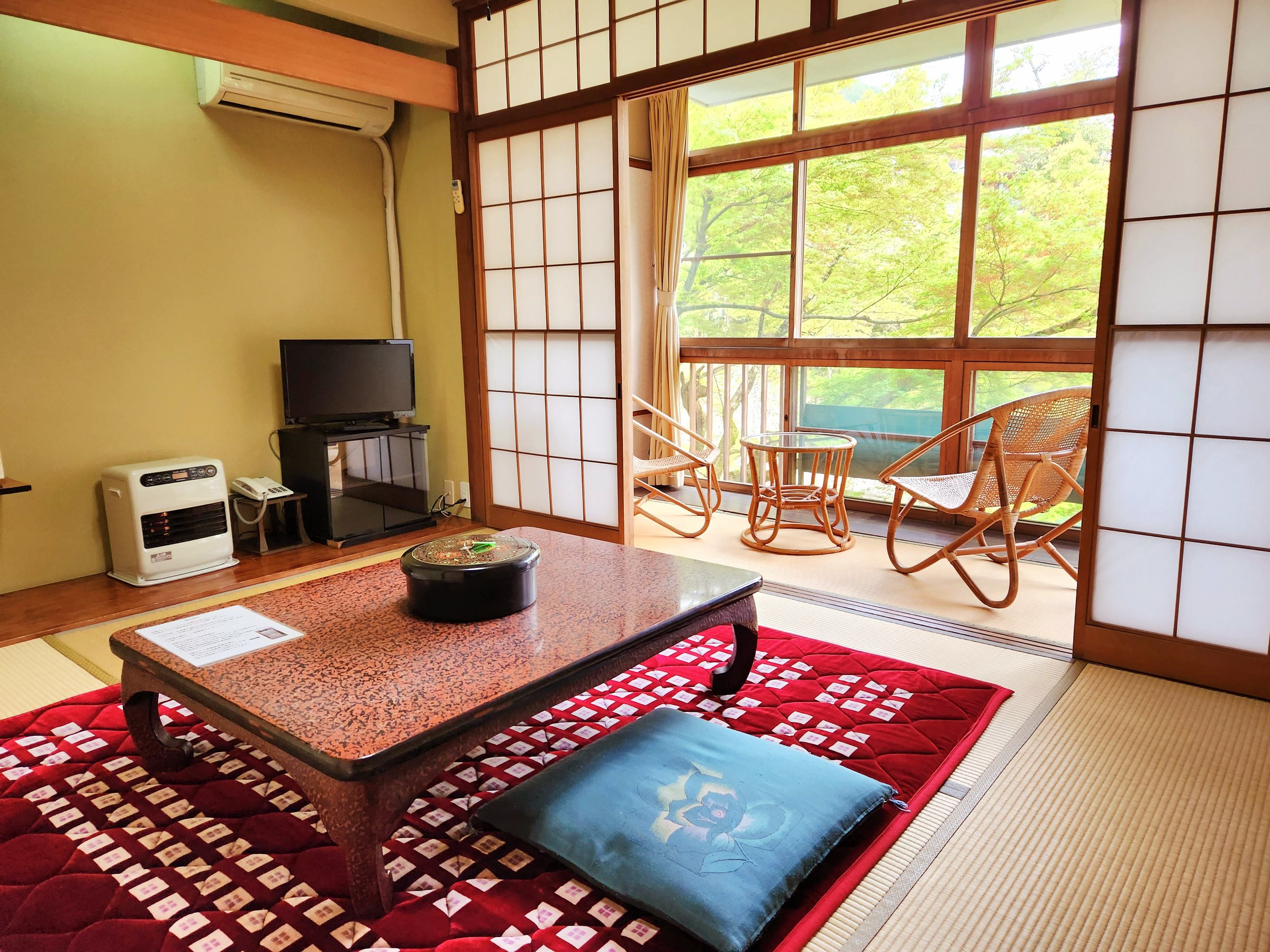 清流吉田川を眺められる、居心地の良い畳のお部屋で、ごゆっくりとお寛ぎください。