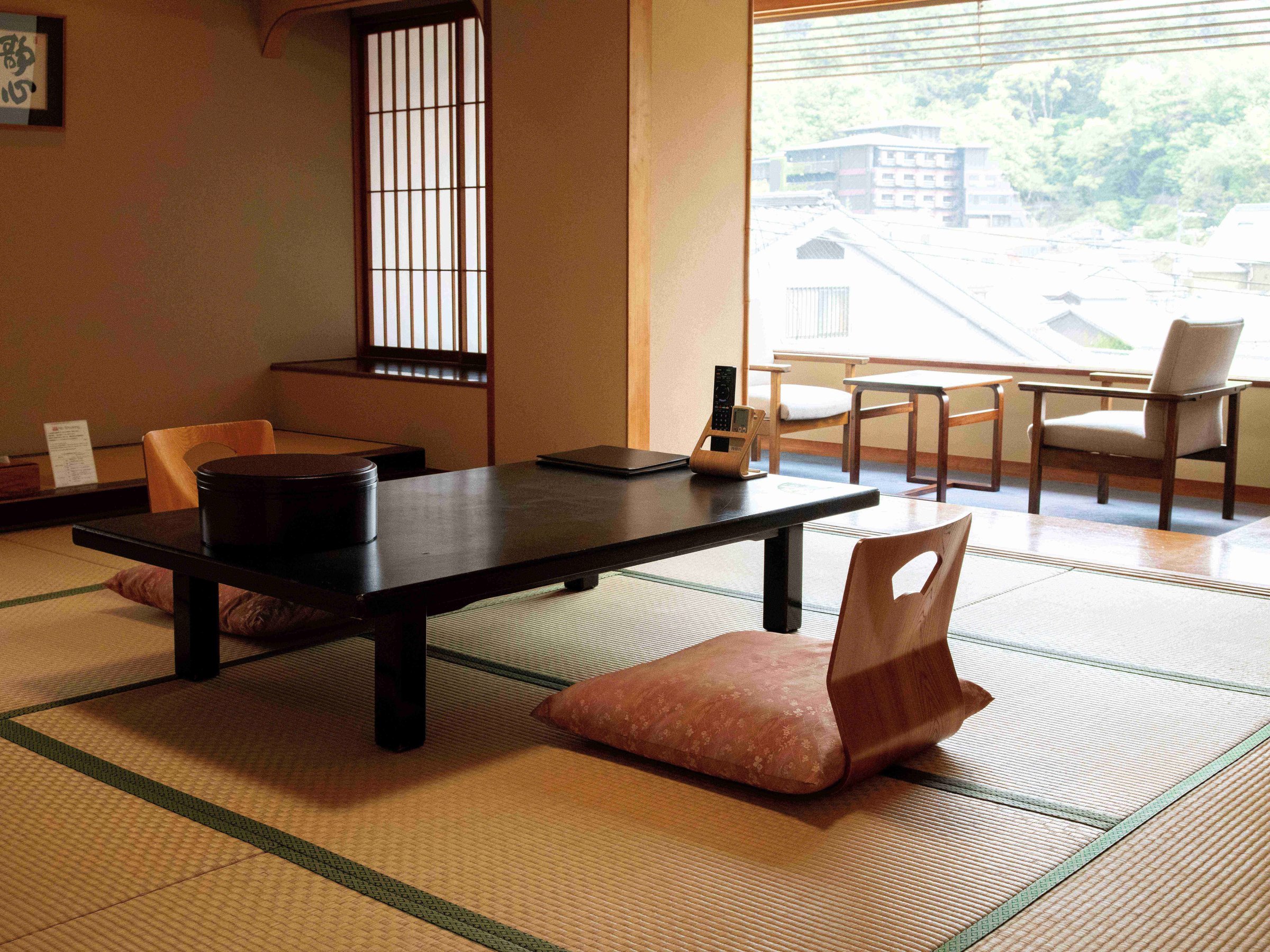 〇2名様から5名様までご利用のお部屋。〇ご夫婦やカップルやお仲間でのご旅行に最適!〇厳島神社までの街道である「表参道」を望む景色。〇落ち着いた雰囲気でご滞在をお楽しみください♪〇Wi-Fi完備