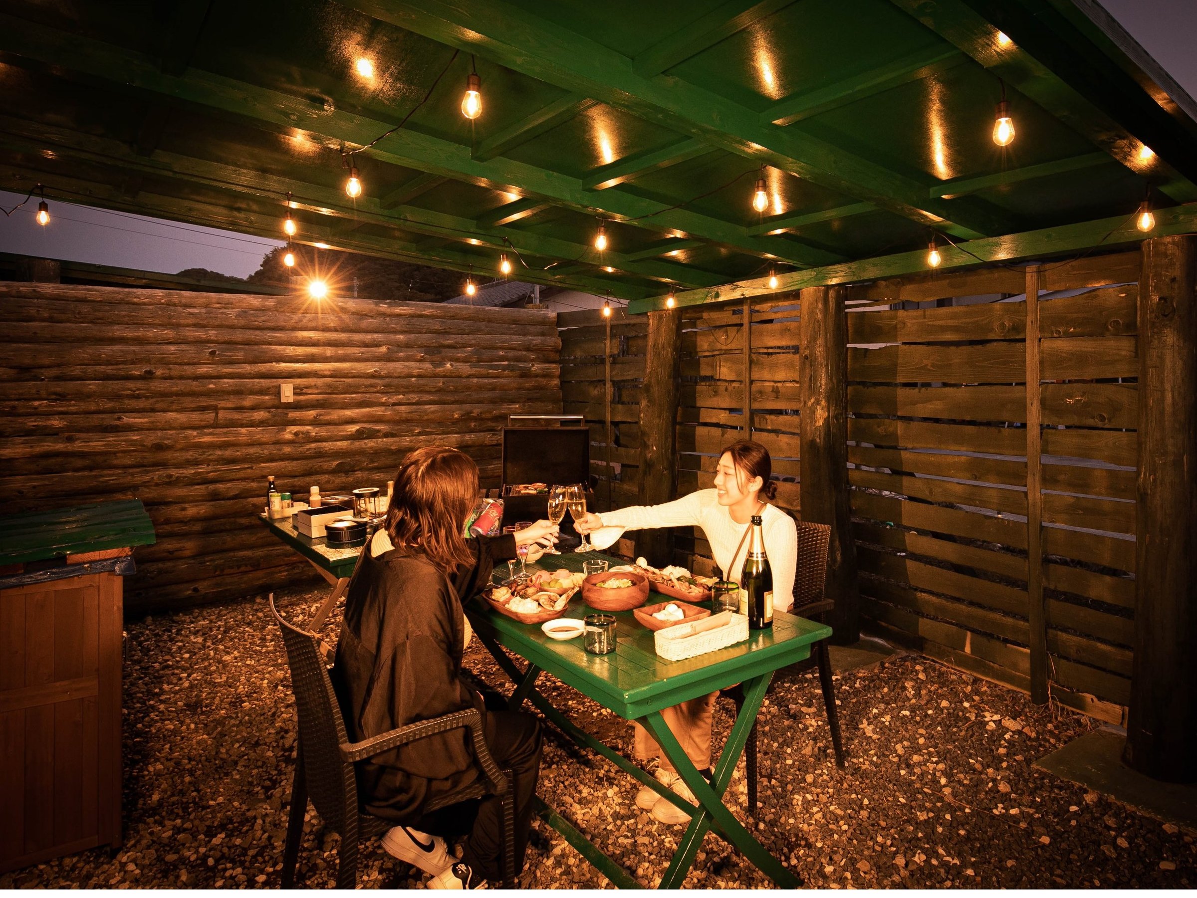 完全プライベート空間の中に、ドームテント BBQグリル、ガーデンテーブル、小庭、専用ドッグラン、露天風呂、シャワー、トイレ、洗面台が設備されており、ドーム内には ダブルベッド2台、ソファーベット1台、エアコン、ドレッサー、冷蔵庫、電子レンジ、(冬季にはこたつを設置)各種アメニティーが設置されております。朝夕のお食事もBBQスタイルにてプライベート空間で何も気にせずお食事をお召し上がり頂けます!青空、星空を眺めながらの露天風呂で、喧騒から離れ、日頃の疲れやストレスのデトックスをしてみてはいかかですか