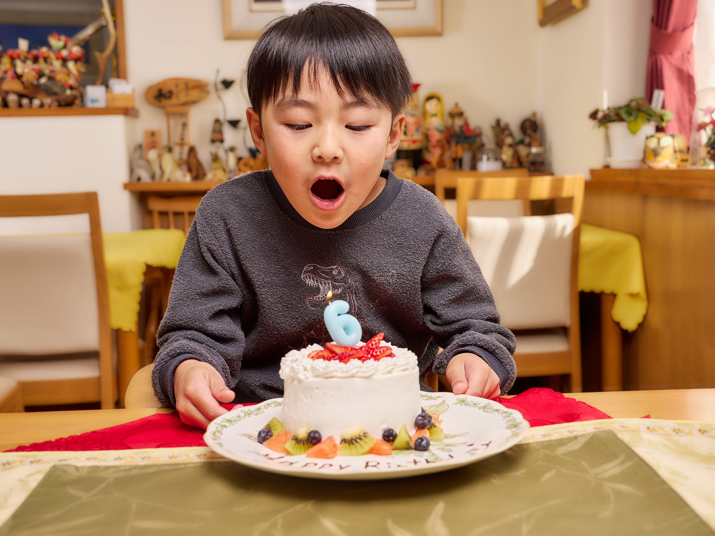 お誕生日ケーキ(3000円~)にはロウソクとプレートにお名前のサービスがあります