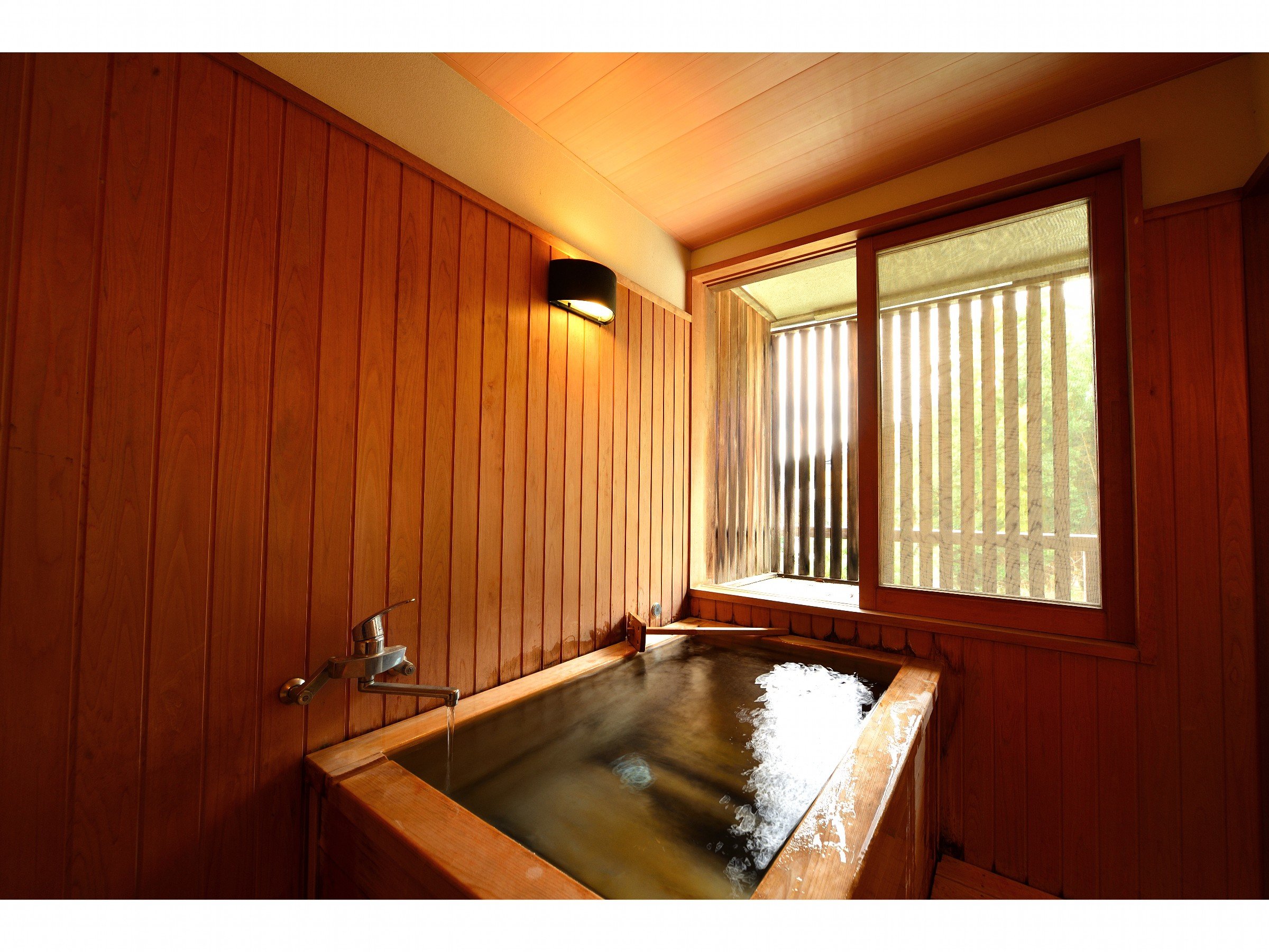 【檜温泉付き客室】 木の温もりに包まれる浴室 24時間好きな時に源泉を愉しむ