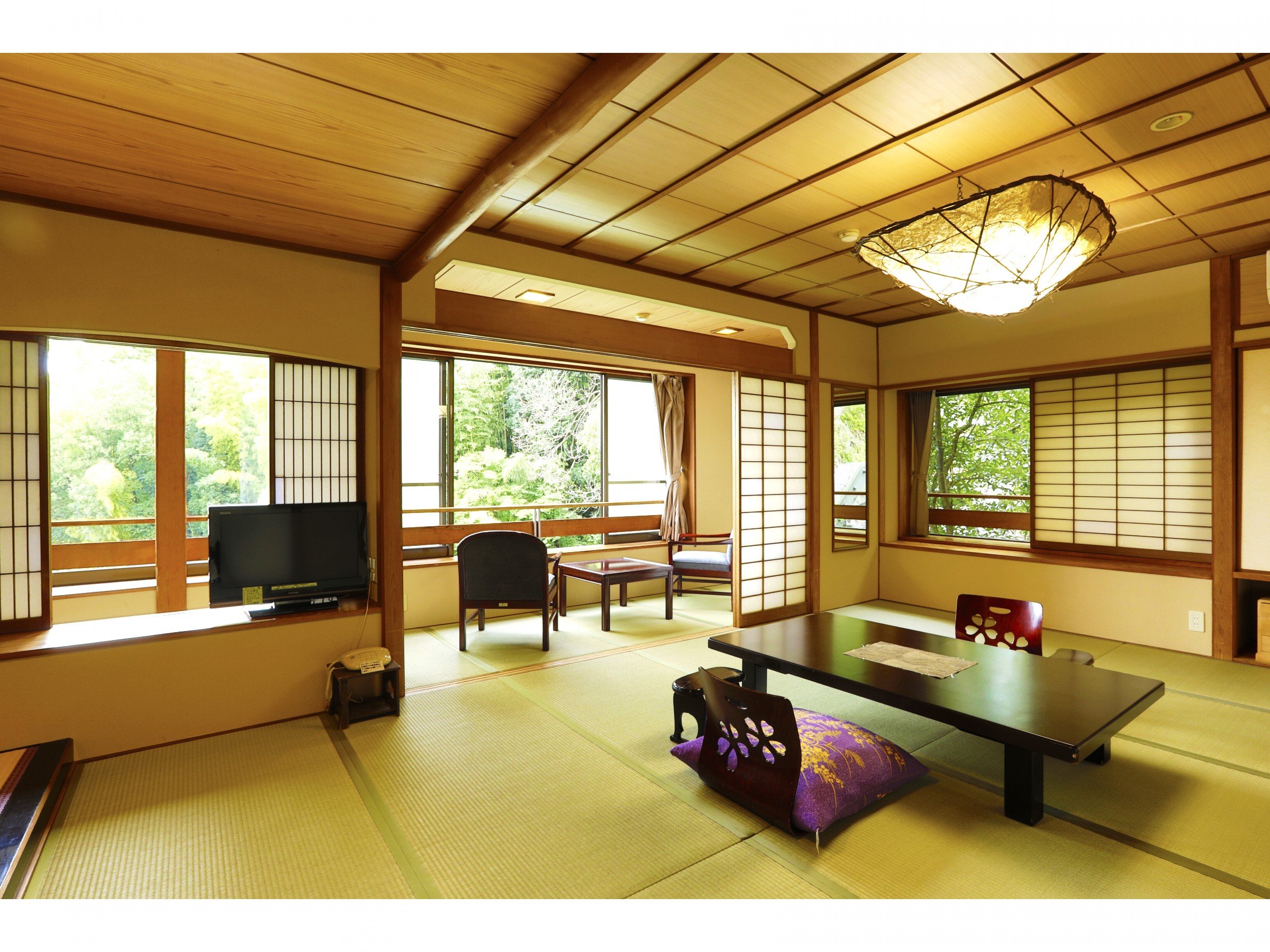 ■ゆったりと寛ぐ10-15畳の和室 全館畳敷きの当館ならではの素足で過ごす解放感。広々とした和室で伊豆長岡の静かな時間をお過ごしいただけます