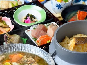 ■ご夕食旬の食材を彩り豊かに詰め込んだ松花堂風の夕食膳となります。岩手和牛をはじめ、地元の恵みを活かした約10品をご用意。素材の持ち味を大切にした、...