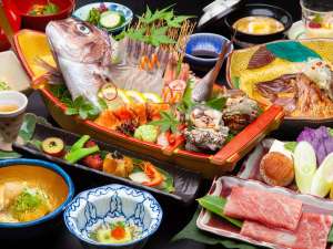 [ Funamori Kaiseki x Restaurant “Rooms with hot spring open-air bath or hot spring indoor bath” popular dynamic boat-mori Kaiseki meal and sea bream kabuto arasui etc.