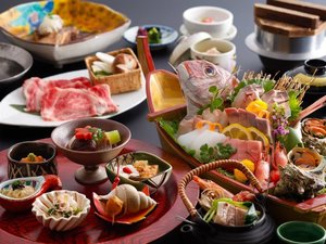 [舟盛(刺身)会席x 餐厅“带温泉露天浴池或温泉室内浴池的客房”受欢迎的活力船森怀石料理和鲷鱼kabuto arasui等。