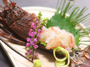 ご夕食事に伊勢海老のお造りが付きました、料理長おすすめなプランです。