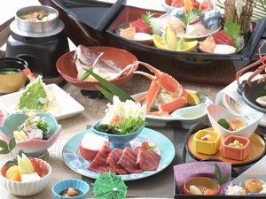 知多知多牛涮锅一人份、烤海鲜陶盘、雪蟹腿、免费鲍鱼排(仅限工作日)、时令鱼类料理、时令小菜等,充满海鲜的豪华方案。(可能会根据季节或供应情况而变化)