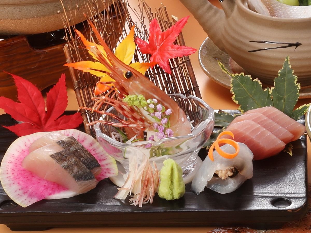 【日本海鮮魚4種盛り】ご夕食の時間に合わせて捌くので鮮度抜群です。料理長自慢の一品です。