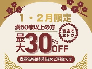 ご宿泊者の中におひとりでも50歳以上の方がいらっしゃればご予約可能です!
