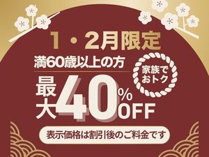 ご宿泊者の中におひとりでも60歳以上の方がいらっしゃればご予約可能です!