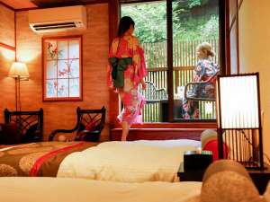 オンラインカード決済可【HP限定価格】薔薇の花びら貸切風呂40分付【グルメ会席】ゆかたde湯めぐり≪朝すき焼≫女性用の岩盤浴0円
