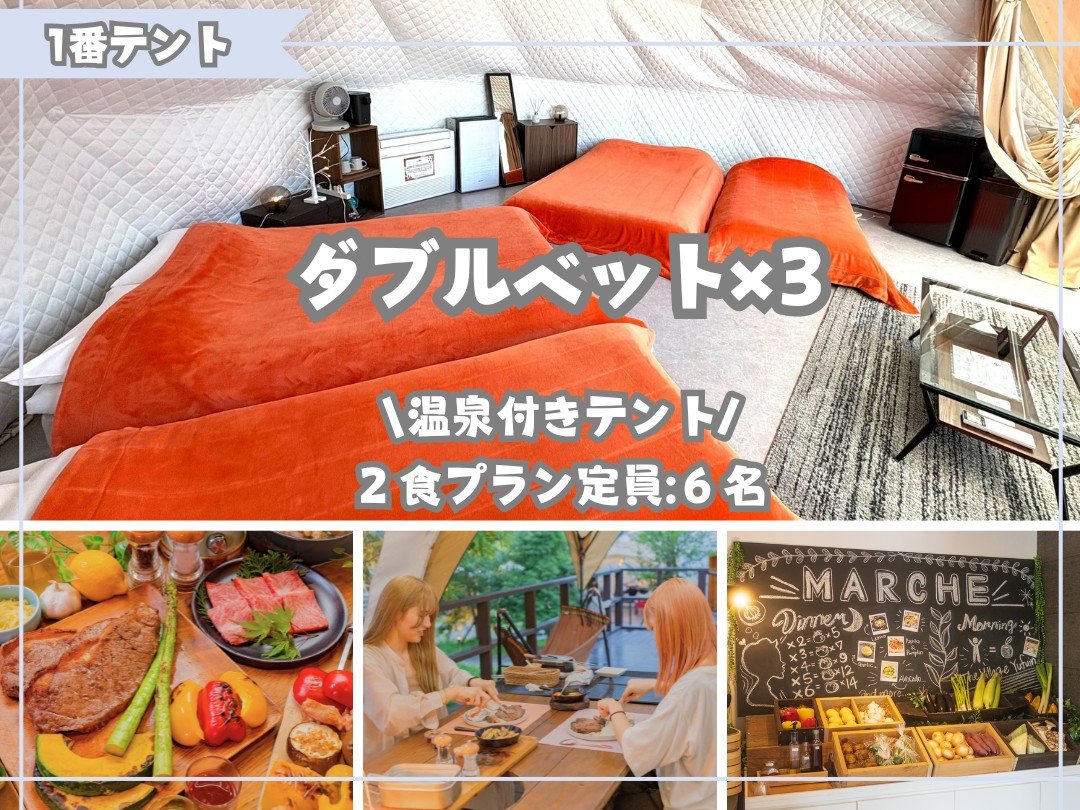 (1)【温泉付客室ドームテント】ダブル×2 & シングル×2