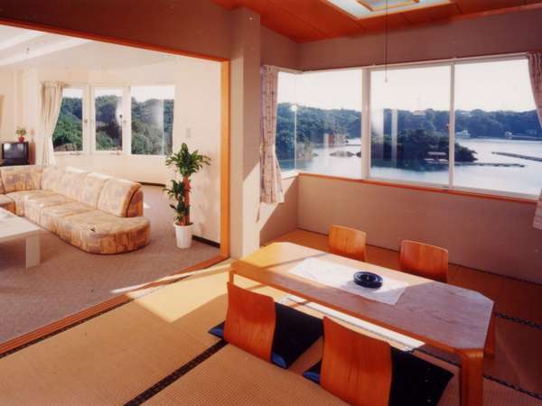 お部屋は、広々とした15帖のリビング+和室10畳+ベットルームからなる、眺めの良い海側の