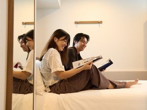 我们可以将两张床拼在一起,以满足您的需求,让您的孩子可以和您一起躺下睡觉!
