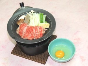夕食の陶板料理を土佐黒牛、『四国カルスト産ゆすはら牛』のすき焼きへグレードアップ。